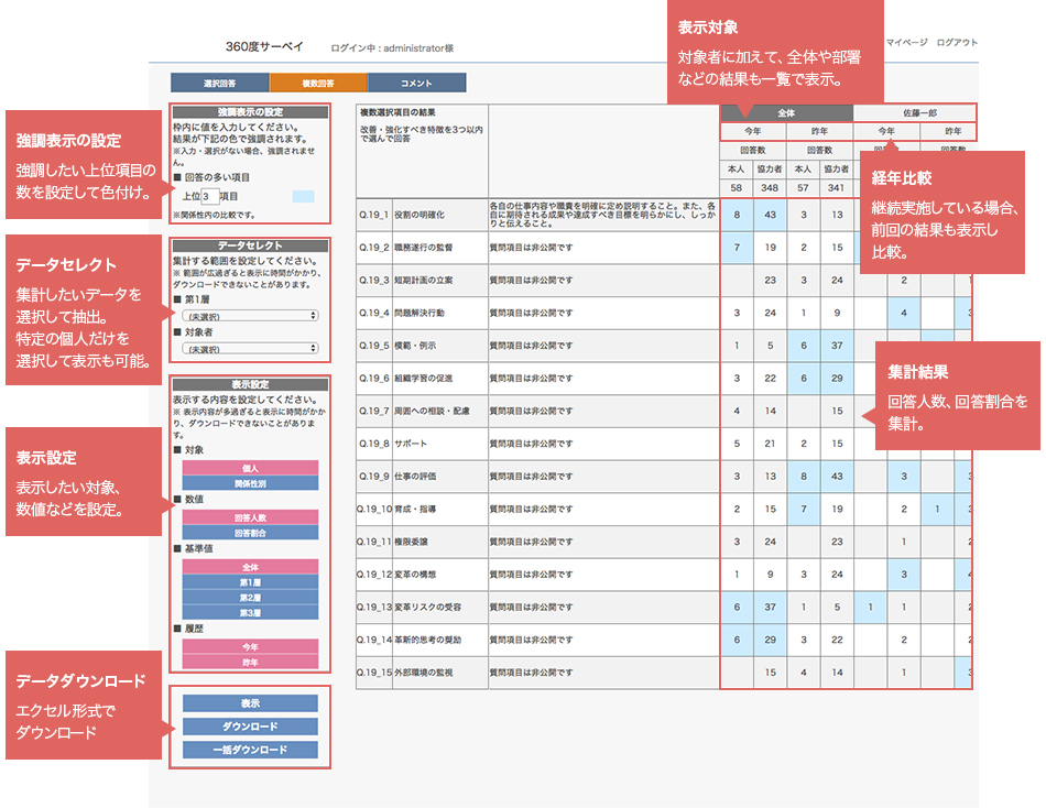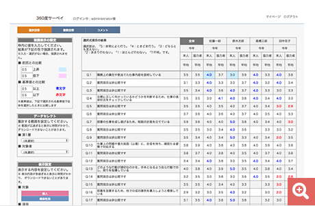 インターネット上の専用画面で、360度評価の結果を集計するシステムです。